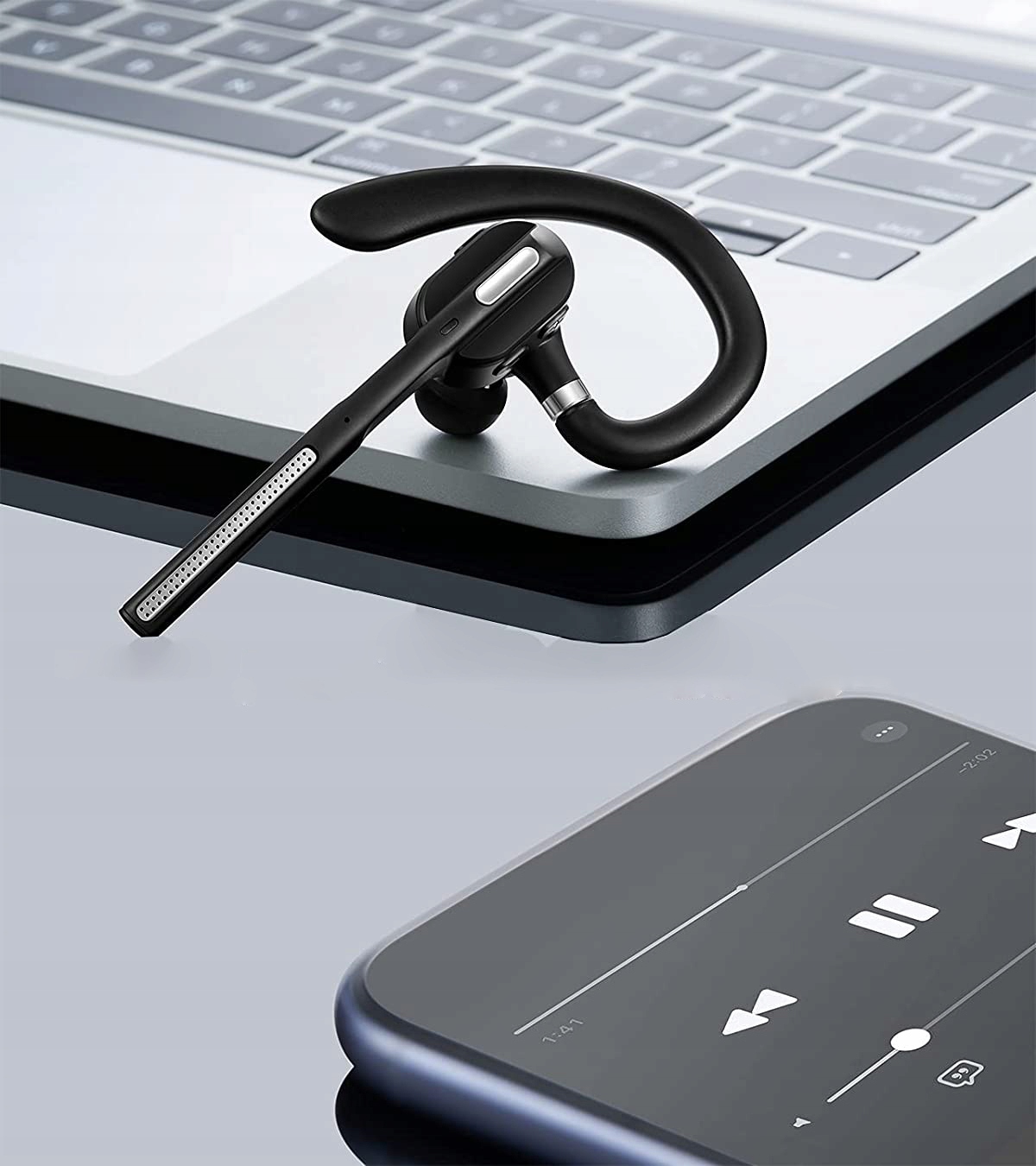 SWOBODA RUCHU DZIĘKI TEMU, ŻE SŁUCHAWKA TRZYMA SIĘ NA UCHU I NIE ZAJMUJE RĄK